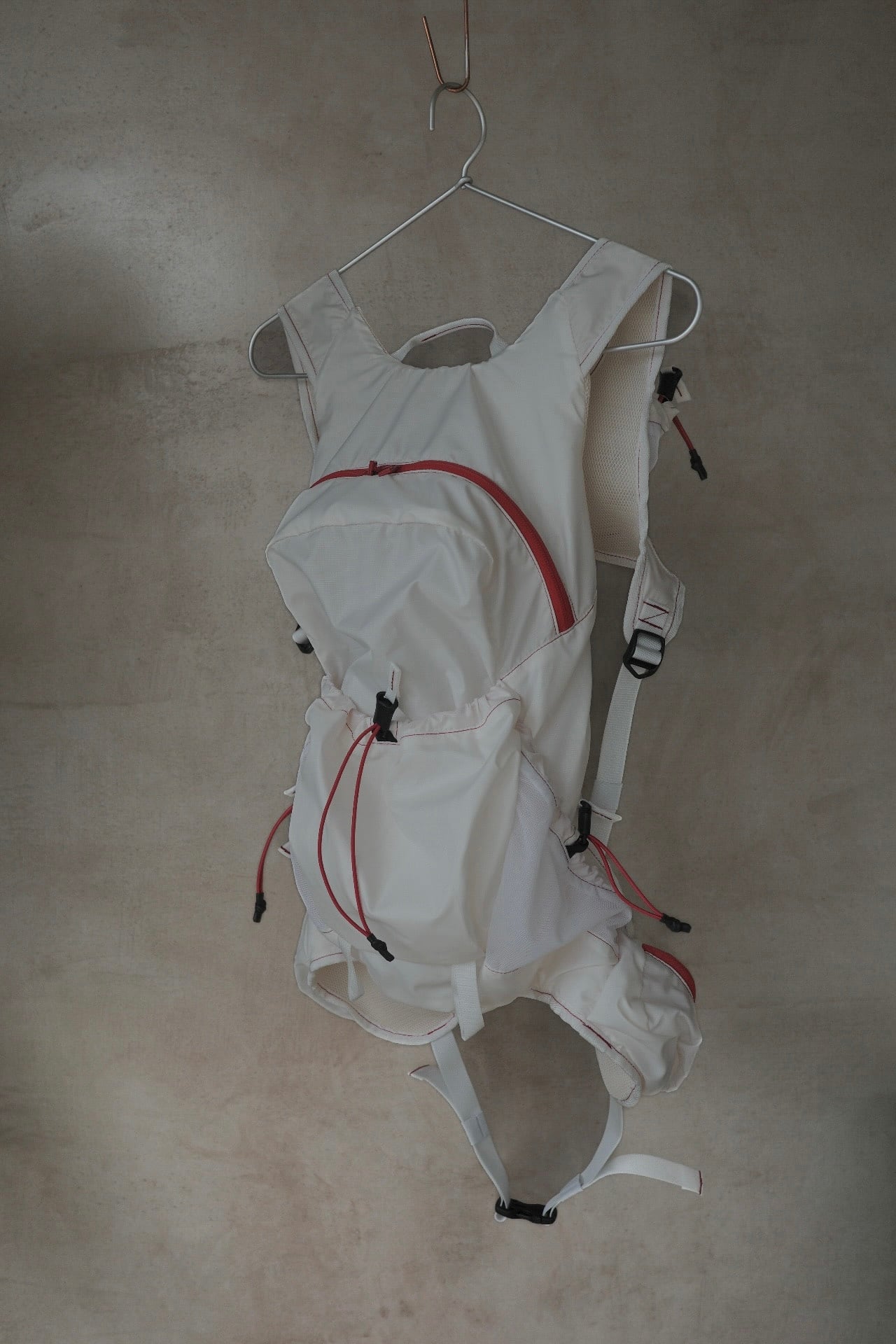 軽量かつ耐久性のあるナイロン素材を使用し、日常使いから特別なシーンまで幅広く対応。 meanswhileならではの機能性と洗練されたデザインが融合したバックパックです。 身体に自然にフィットする設計で、長時間の使用でも快適に持ち運べます。 カラーは、ホワイトに近いアイボリーと深みのあるカーマインレッド。 シンプルながらも存在感のあるデザインです。